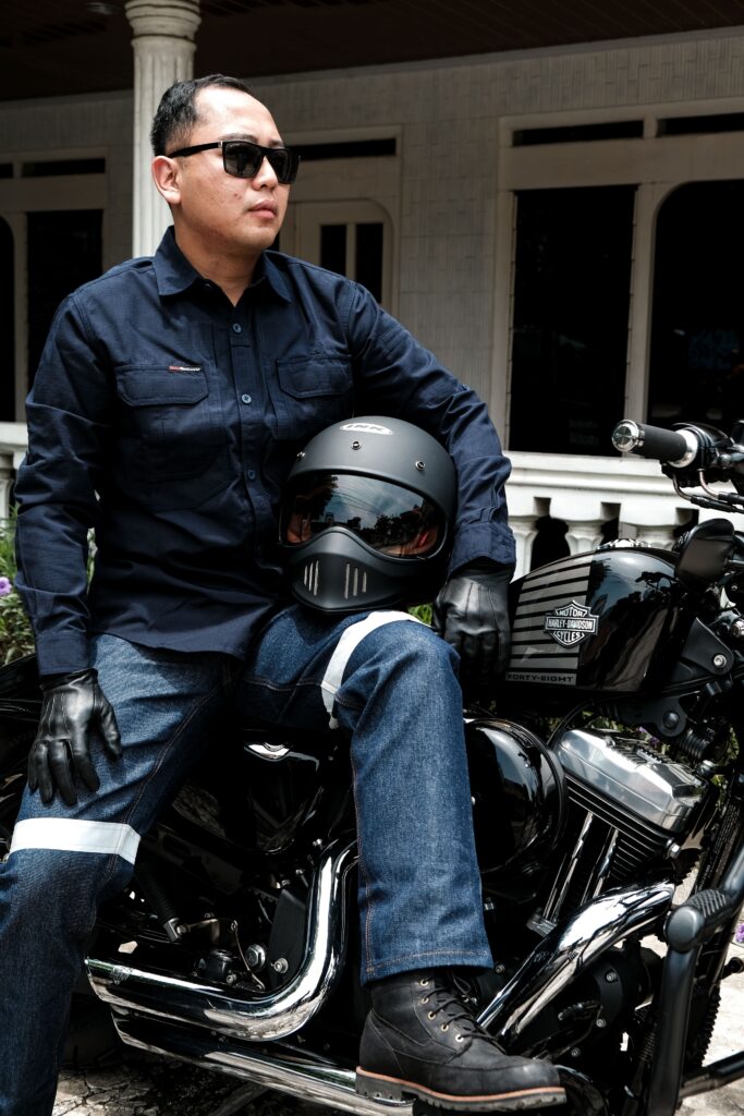 Selain produk siap pakai, Mokoworkwear menyediakan layanan custom celana safety untuk berbagai kebutuhan perusahaan. Klien bebas memilih bahan, warna, dan desain, lalu menambahkan bordir logo atau sablon nama agar seragam tampil profesional dan mudah dikenali.
