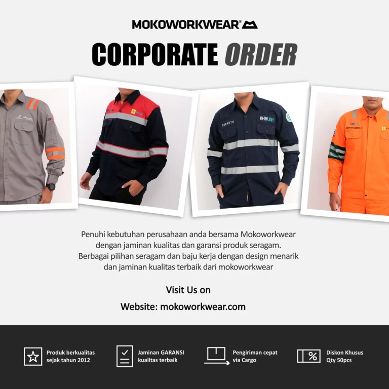 Jadi, jangan ragu memilih baju kerja custom dari Mokoworkwear. Segera konsultasikan kebutuhan seragam kerja perusahaan Anda dengan kami dan nikmati layanan profesional serta hasil berkualitas terbaik.